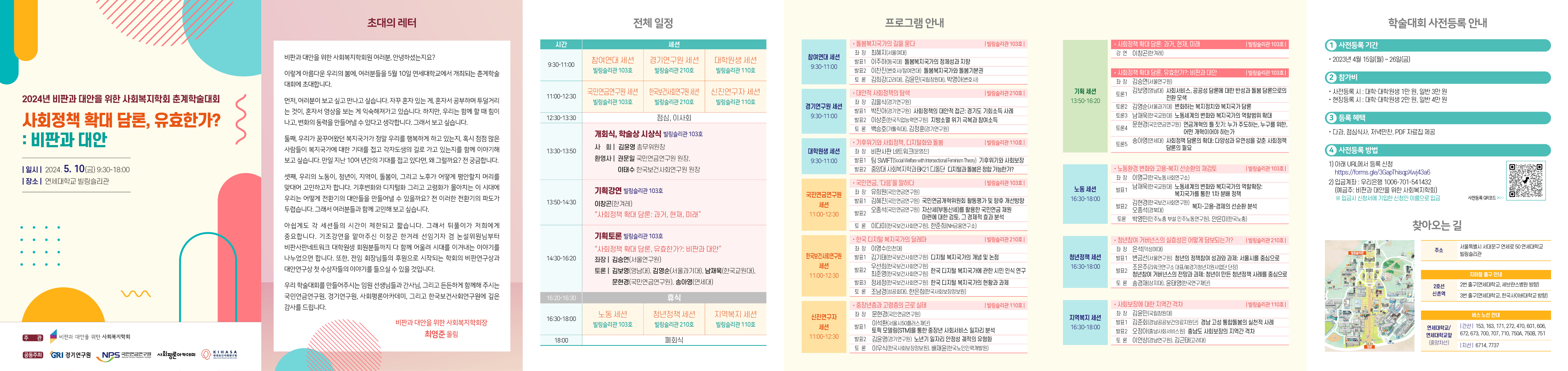 ▪ 세션 프로그램: 공동주최 세션, 노동 세션, 청년정책 세션, 지역복지 세션, 대학원생 세션, 신진연구자 세션, 참여연대 세션