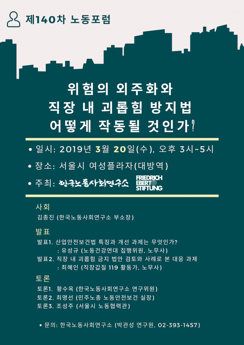 [140차 노동포럼] 위험의 외주화와 직장 내 괴롭힘 방지법 어떻게 작동될 것인가?