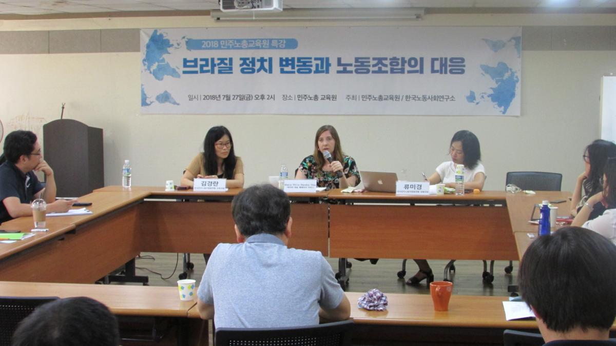 제138차 노동포럼이 7월 27일 금요일 오후 2시에 민주노총 교육원에서  "브라질 정치변동과 노동조합의 대응"이란 주제로 열렸습니다.