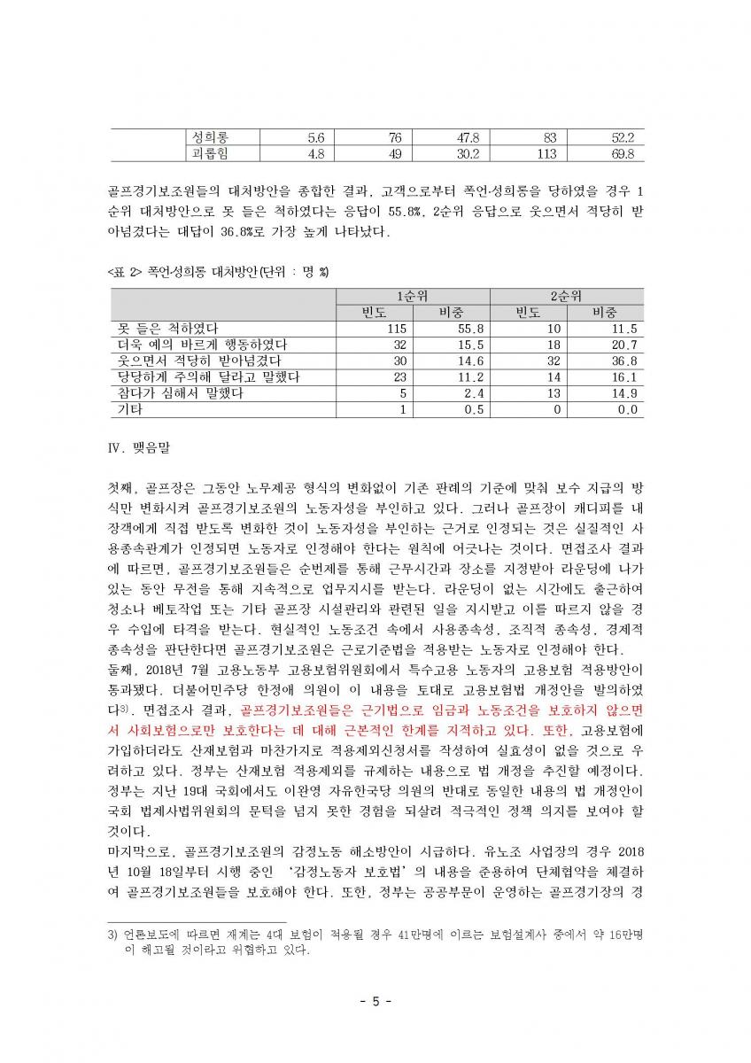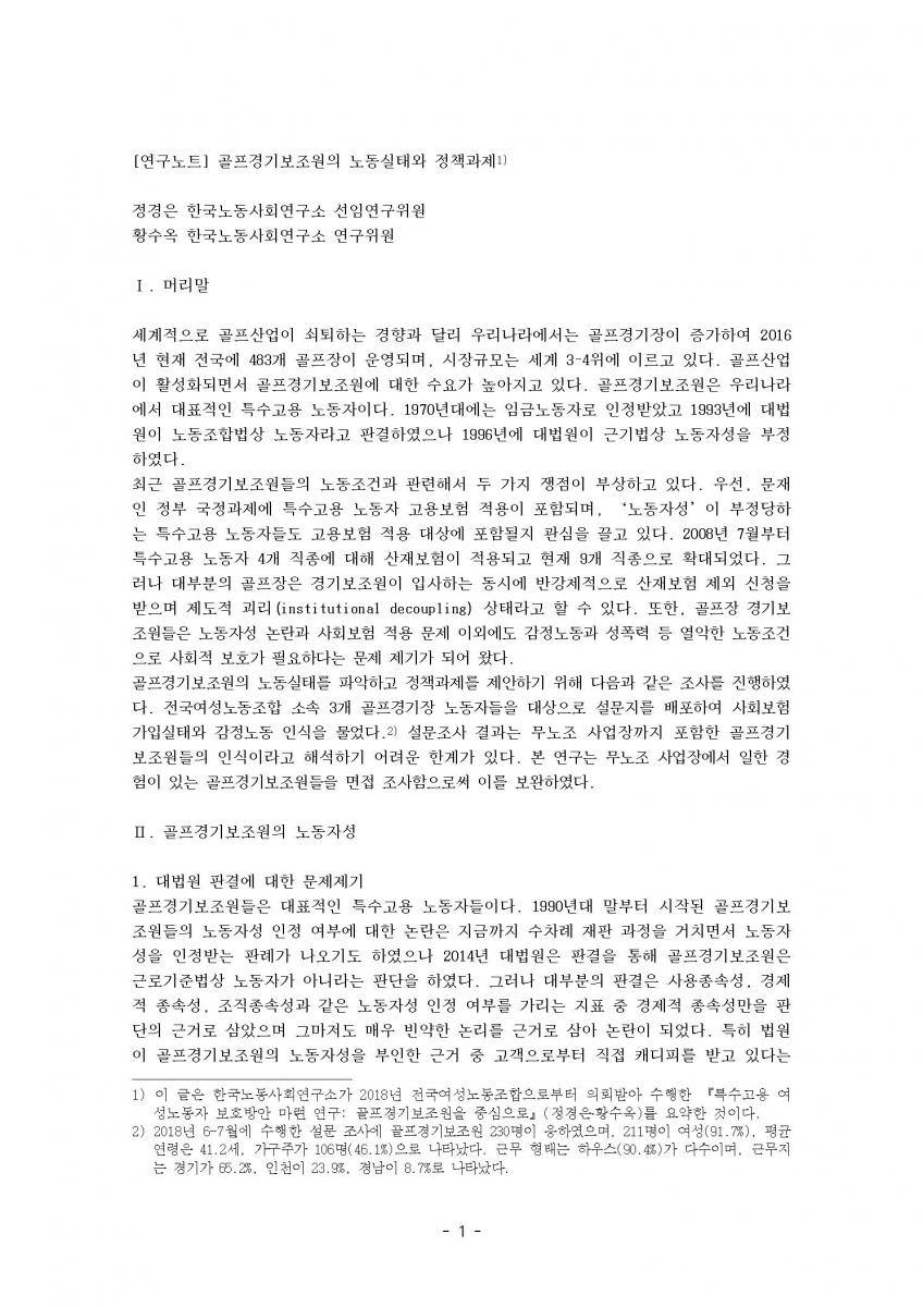 골프경기보조원의 노동실태와 정책과제